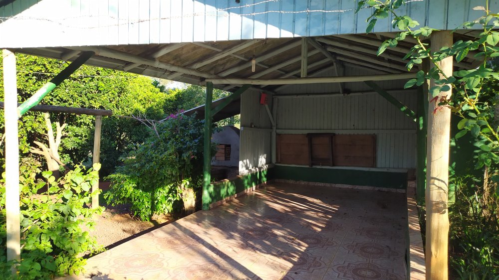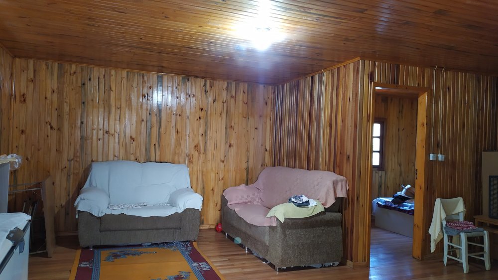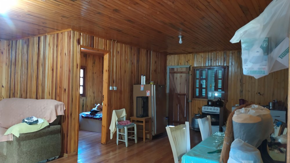 possui uma casa de madeira em excelente estado, paredes dupladas.