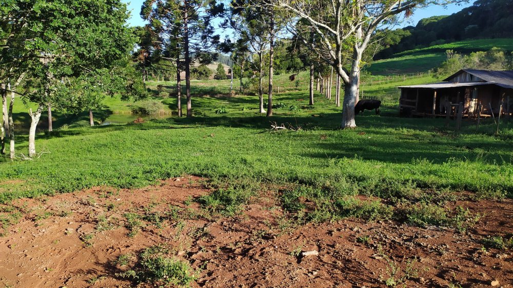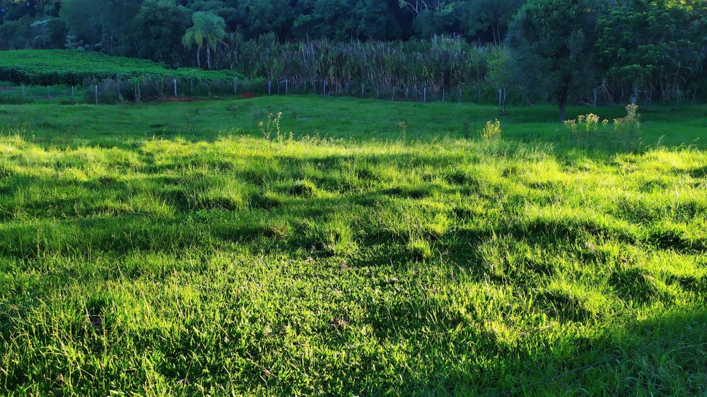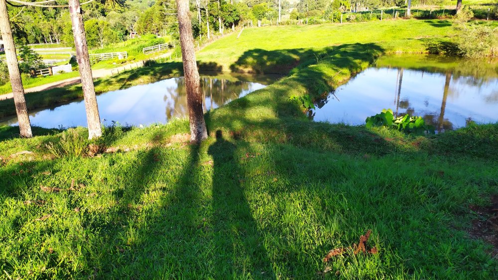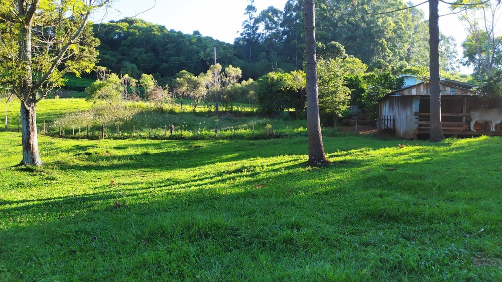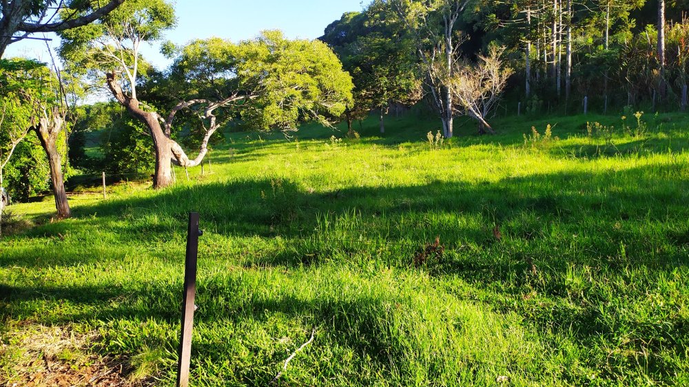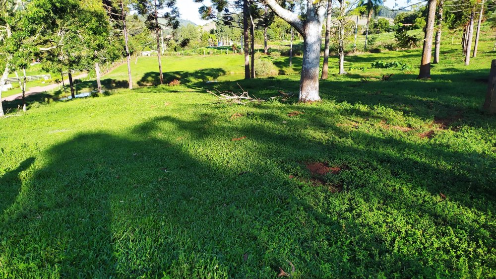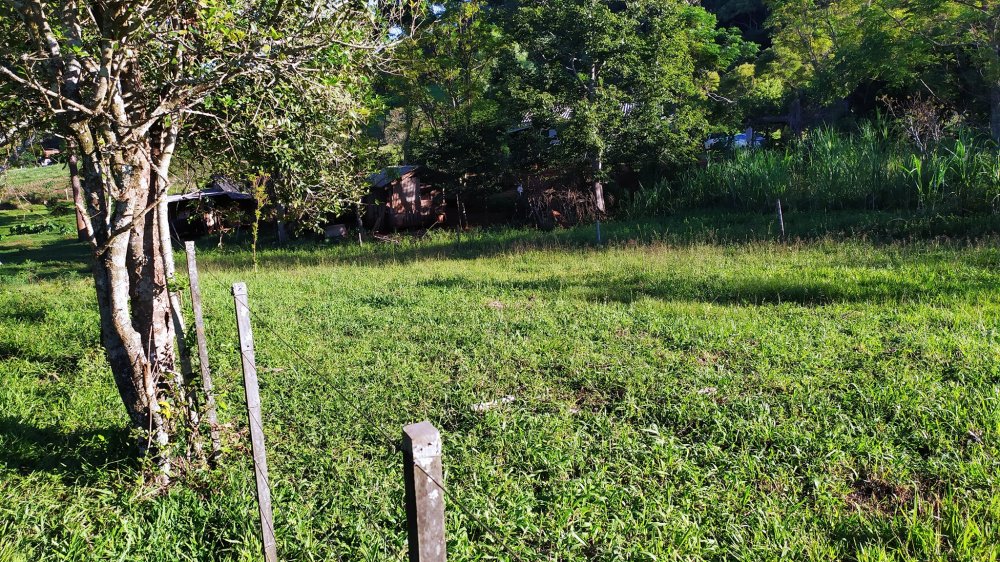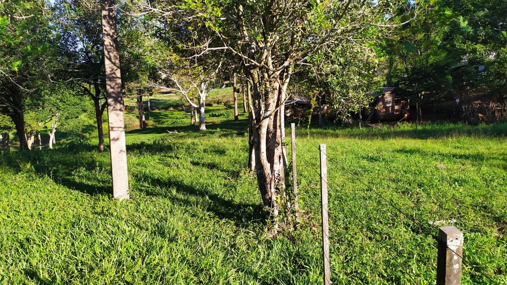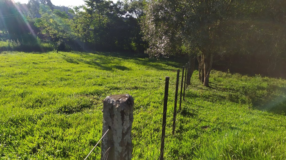 Chácara toda cercada, e com gramado formado em boa parte.