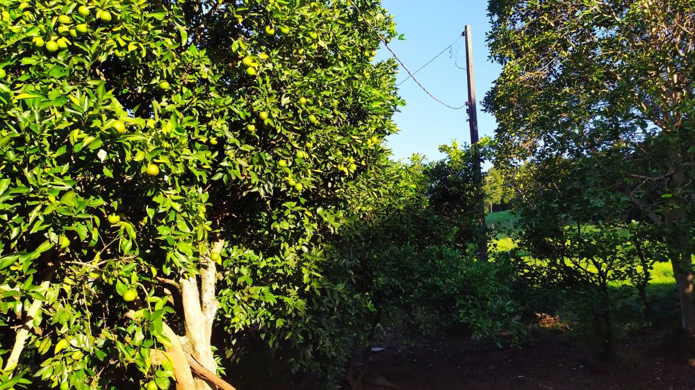 nela há um pomar com várias espécies de árvores frutíferas, e uma parte com eucaliptos com cerca de 15 anos.