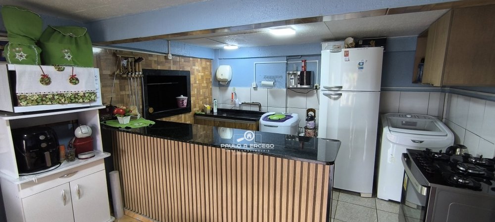 - Piso inferior conta com um ambiente de cozinha para área de festas, com churrasqueira e lavanderia.
