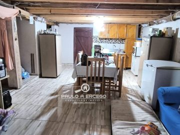 Na parte de baixo com cozinha , lavanderia, banheiro, varanda com churrasqueira e na parte superior, 3 quartos.