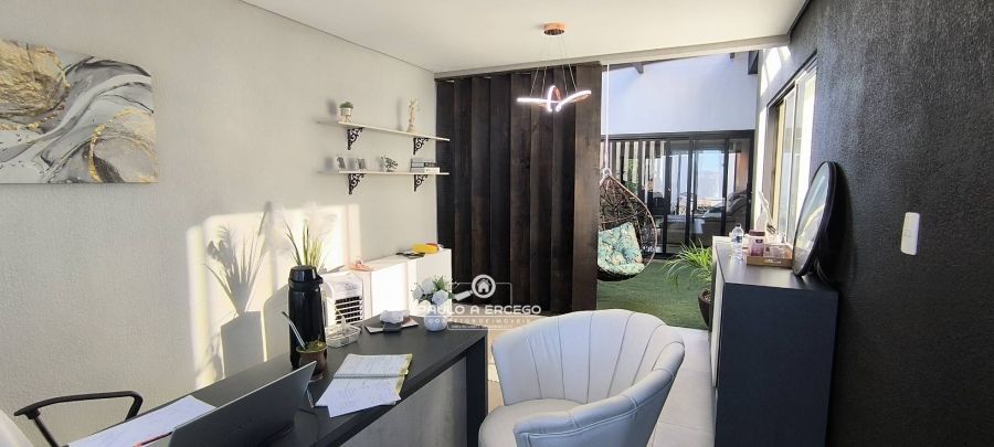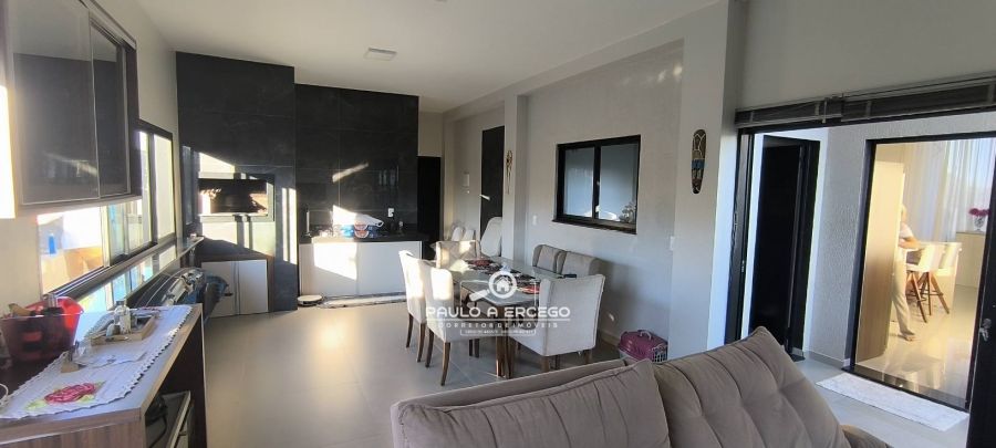 Área gourmet com churrasqueira, sala de tv, banheiro social e espaço para transformar em outro quarto