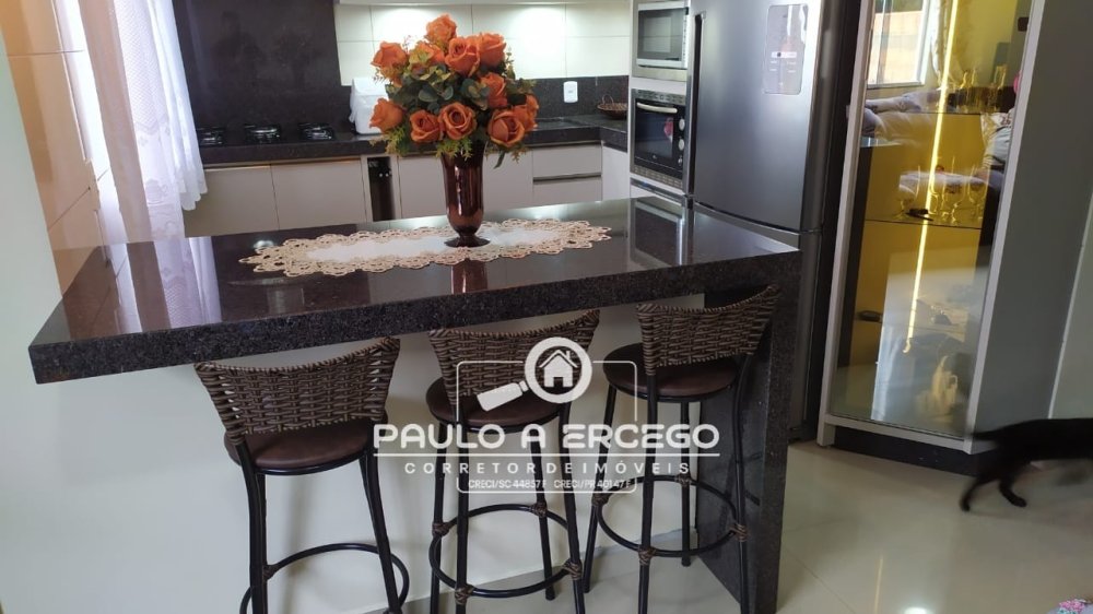 a cozinha toda planejada, com mármore café imperial de ótima qualidade, móveis com iluminação em led, trazem uma elegância ao ambiente.